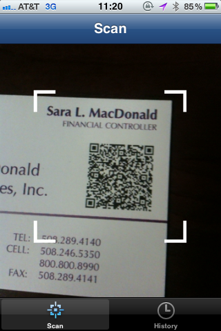 using the scan app from QR Code City you scan the QR Code on our business card.